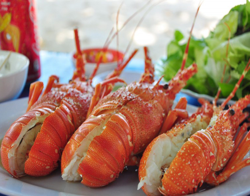 18h30: Đoàn dùng bữa tiệc hải sản, tôm hùm làng bè với các món đặc sản trứ danh của Đảo Tôm Hùm..
