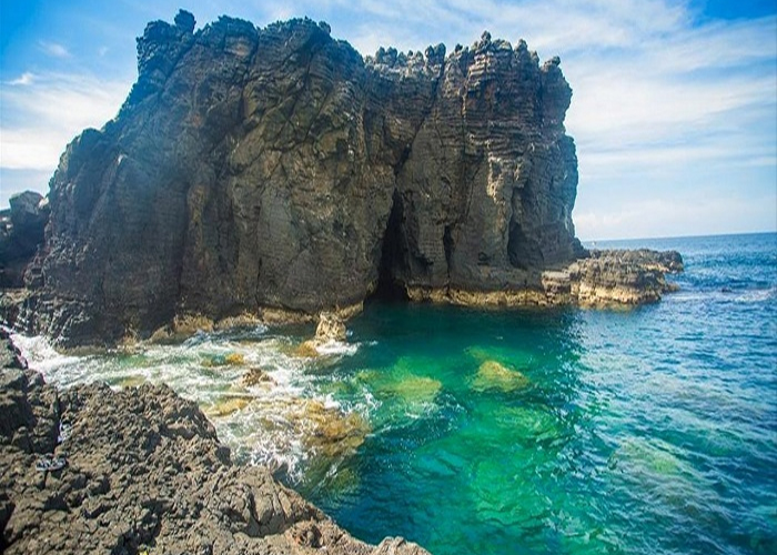 Tham quan gành Hang - bãi Nhỏ: Là một trong những bãi tắm đẹp và trong lành nhất Phú Quý. Nước biển ở đây trong xanh, ít ghe thuyền neo đậu, không khí trong lành và ít người qua lại. Đây bãi biển lý tưởng để du khách hòa mình vào với thiên nhiên, tận hưởng vẻ đẹp yên bình trên đảo.