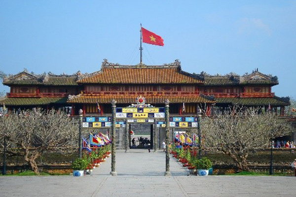 Sáng: Quý khách trả phòng khách sạn, điểm tâm sáng. Tham quan Đại Nội (Hoàng Cung của 13 vị vua triều Nguyễn, triều đại phong kiến cuối cùng của Việt Nam: Ngọ Môn, Điện Thái Hoà, Tử Cấm Thành, Thế Miếu, Hiển Lâm Các, Cửu Đỉnh) và Chùa Thiên Mụ cổ kính, xây dựng từ những năm đầu của thế kỉ XVII.