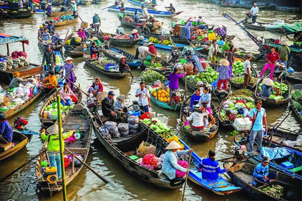 Ngoài những cánh đồng trải dài mênh mông, giao thương trên vùng nước nổi này là một trong những trải nghiệm thú vị.